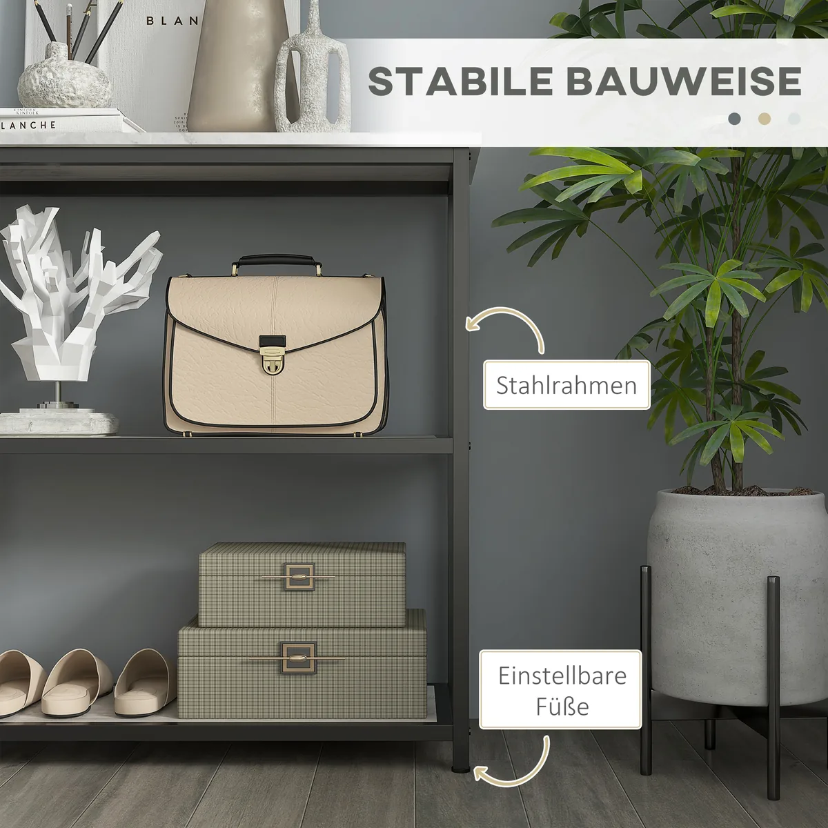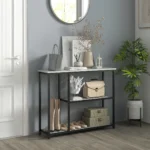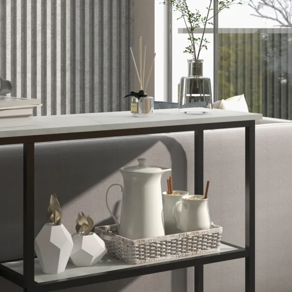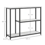 Ieškote protingo saugojimo sprendimo ir elegantiško dizaino įėjimo zonai? Mūsų HOMCOM konsolinis stalas siūlo daug vietos saugykloje. Trys lygiai, skirti rodyti šeimos nuotraukas, augalus ar dar daugiau. Medienos medžiaga & amp; tvirtas plienas garantuoja patikimumą ir amp; jas lengva prižiūrėti. Su šiuo elegantišku stalu suteikite savo koridoriui, svetainei ir miegamajam išskirtinumo.