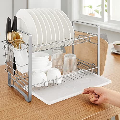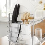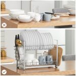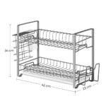 Ši sidabrinės spalvos indų lentyna yra puikus pasirinkimas jūsų virtuvei. Pagaminta iš aukštos kokybės plieno, ji yra patvari ir ilgaamžė. Lentynos dydis su laikikliais yra 51 x 23,5 x 31,7 cm , o be laikiklių – 42 x 23,5 x 31,7 cm . Svoris siekia 1,9 kg, o maksimali statinė apkrova vienam lygiui yra 10 kg.