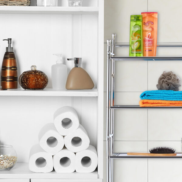 Pasinaudokite šia lentyna ir sukurkite naują sandėliavimo vietą anksčiau nenaudojamame aukštyje. Tai ne tik praktiškas, bet ir stilingas sprendimas jūsų vonios kambariui.