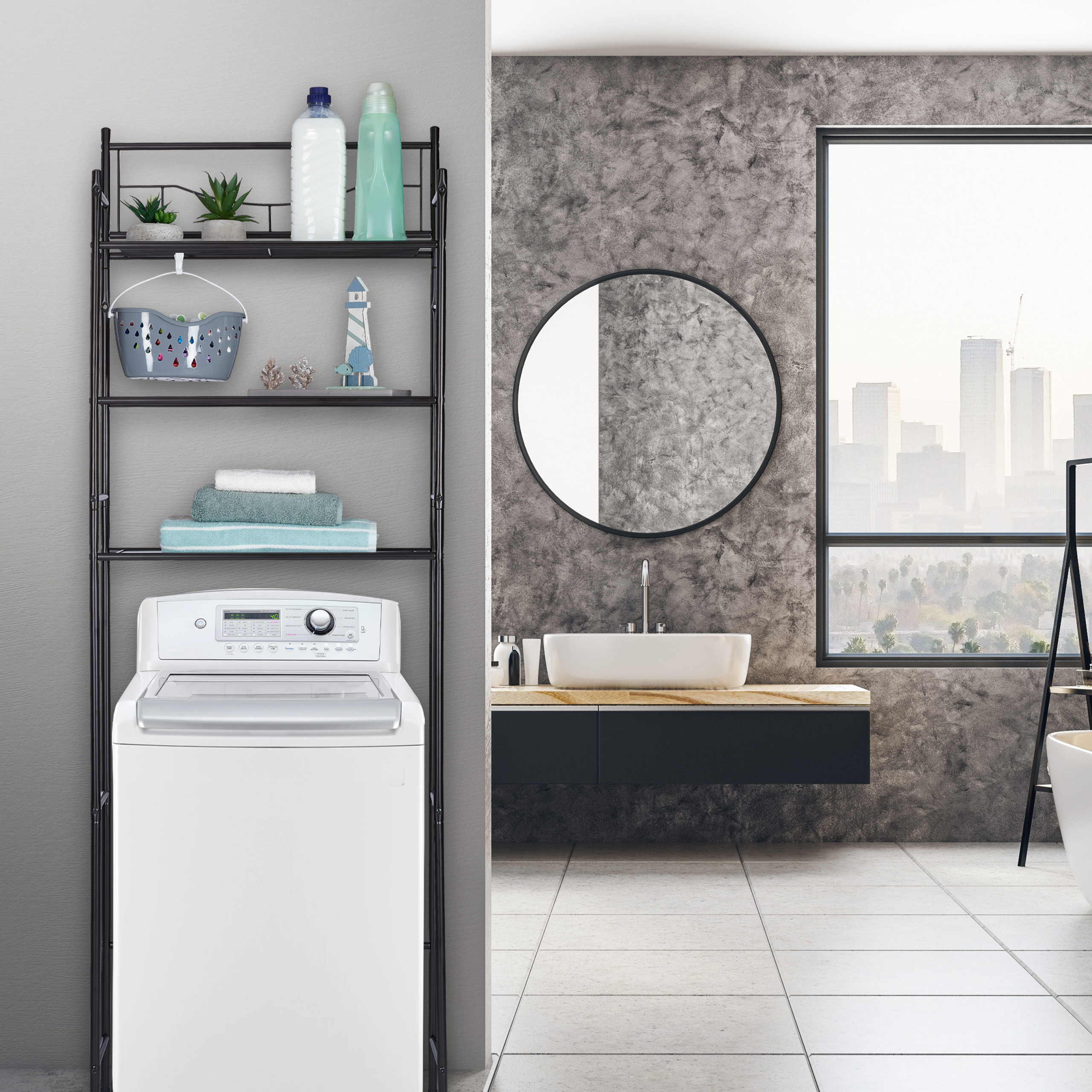 Ieškote būdo, kaip efektyviai išnaudoti erdvę savo vonios kambaryje? Mūsų juodos spalvos lentyna virš skalbimo mašinos su 3 lentynomis yra puikus pasirinkimas, suteikiantis ne tik papildomą vietą, bet ir stilingą akcentą jūsų interjerui. Šis praktiškas sprendimas padės jums tvarkingai laikyti vonios reikmenis, valymo priemones ir kitus būtinus daiktus.