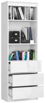 Dėl universalios, achromatinės, baltos spalvos spalvos biuro knygų spinta su dviem lentynomis ir trimis stalčiais yra baldas, lengvai priderinamas prie įvairių išdėstymų: nuo modernaus interjero, įkvėpto skandinaviško dizaino, iki klasikinių erdvių ramioje atmosferoje. Pagaminta iš Kronospan laminuotų plokščių, turinčių padidintą atsparumą trinčiai, o kraštuose pritvirtinta ABS briauna, kuri apsaugo nuo atsitiktinio sugadinimo, knygų spinta ilgą laiką išlaiko elegantišką ir patrauklią išvaizdą net biuro patalpose ir naudojama daugelio žmonių. Patogi, funkcionali konstrukcija su dviem lentynomis, kurias galima montuoti skirtinguose aukščiuose, taip pat trimis stalčiais, kuriuose yra įvairių smulkmenų ar dokumentų, apsaugotų nuo pašalinių akių, biuro lentynoje lengviau palaikyti tvarką ir laikyti net neįprasto formato lentynas. Blizganti knygų spinta bus sėkmingas pirkinys klientams, kurie vertina eleganciją ir kruopščią apdailą. – Knygų lentyna pagaminta iš 16 mm Kronospan laminuotos plokštės, atspari trinčiai – Stalčių fasadai pagaminti iš akrilo MDF plokštės. Jai būdinga – Knygų spintoje yra lentynos, reguliuojamos 3 lygiais, iš anksto išgręžtos tvirtinimo skylės – Dvipusis durelių mazgas – surinkimas dešinėje ir kairėje stelažo pusėje. – Kraštais apklijuotas ABS, užtikrinantis aukštą apsaugą nuo pažeidimų – GTV ritininiai kreiptuvai su prailginimo užraktu – Knygų spinta siunčiama pakuotėse, kad būtų galima surinkti savarankiškai – Instrukcijos pridedamos – 24 mėnesių garantija