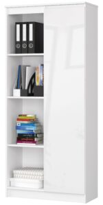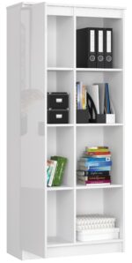 ,, baltos spalvos spalvos yra neutraliausia, nesenstanti spalva, kuri pastaruoju metu sulaukė didelio klientų populiarumo. Skandinaviško stiliaus,, baltos spalvos spalvos biuro spinta – įdomus sprendimas, skirtas tiek gyvenamųjų, tiek biurų interjerus organizuojantiems žmonėms. Tai puikus labai geros kokybės ir unikalaus dizaino derinys. Jis puikiai dera prie dabartinių tendencijų ir žavi savo paprastumu bei elegancija. Funkcionalų sprendimą rasite mūsų internetinėje parduotuvėje už puikią kainą. 80 cm pločio knygų spinta susideda iš dviejų dalių – uždaros ir atviros. Spintelės priekis pagamintas iš blizgios laminuotos plokštės. Visa tai yra labai patvari ir atspari dilimui. 180 centimetrų aukščio baldas tiks tiek didelėse, tiek mažose patalpose, kuriose galėsite susidėti visus reikalingus daiktus, pavyzdžiui, knygas, segtuvus ar aplankus su dokumentais. – Knygų lentyna pagaminta iš Kronospan laminuotos plokštės, 16 mm atspari trinčiai – Durų priekinė dalis pagamintas iš akrilo MDF plokštės. Jai būdingas aukščiausias blizgesio standartas. – Knygų spintoje iš viso yra 8 lentynos – Dvipusis durų mazgas – surinkimas dešinėje ir kairėje stelažo pusėje. – Briaunos padengtos ABS briauna, kad būtų apsaugota nuo pažeidimų – Knygų spinta siunčiama pakuotėmis, kad būtų galima surinkti savarankiškai – Pristatymo vadovas – 24 mėnesių garantija