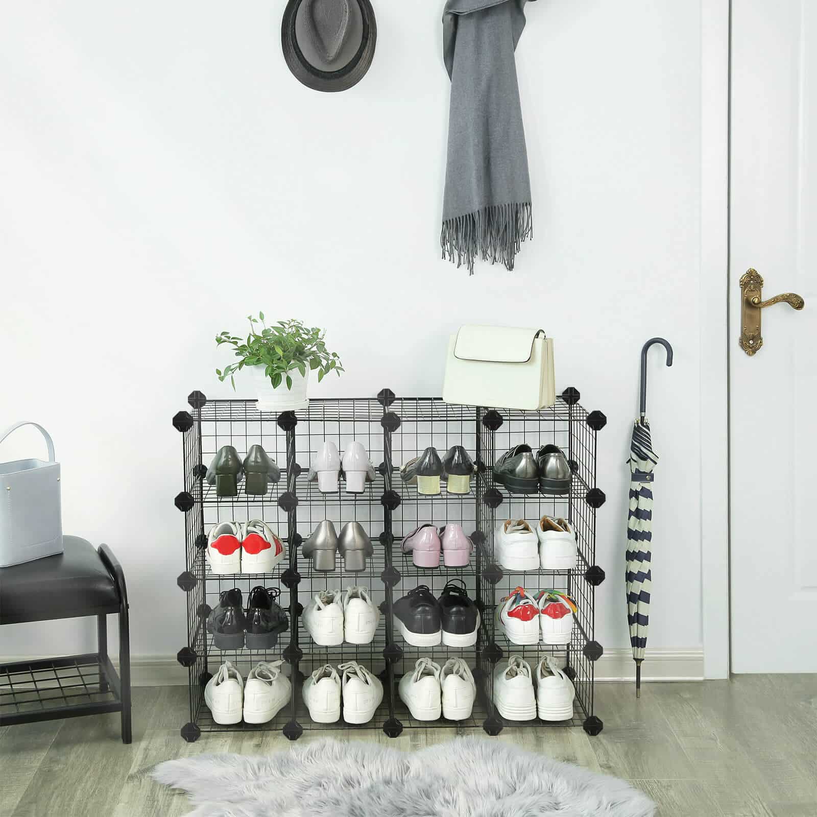 Čia viskas dera… Kiekvienas žemo aukščio metalinės vielos kubas yra tvirtesnis už didesnius kubus, todėl puikiai tinka vyriškiems, moteriškiems ir vaikiškiems batams. Taip pat galite naudoti mūsų metalinį tinklelį drabužiams, žaislams, knygoms, įrankiams ir kt. Visi 16 kubelių yra patogiai pasiekiami.
