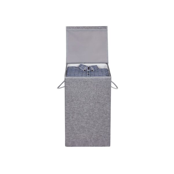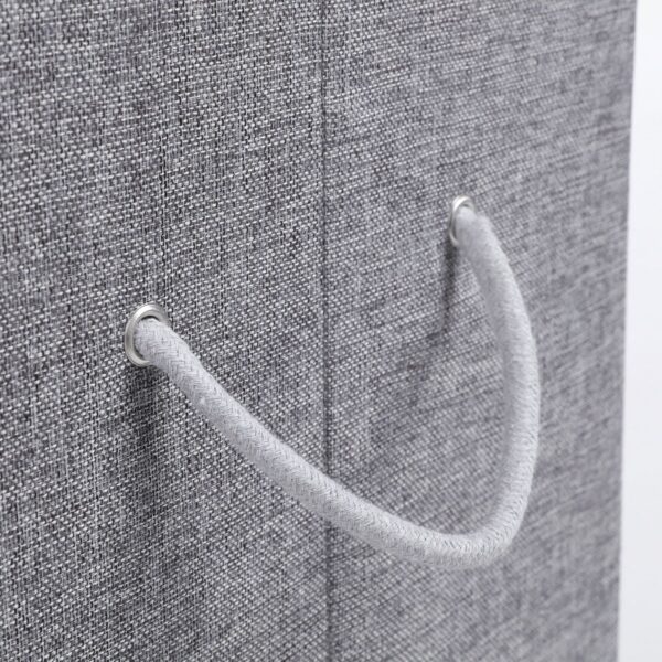 Odai nekenksminga lino imitacija: šis skalbinių krepšelis padengtas kvėpuojančia lino imitacija elegantiška pilka spalva. Ši medžiaga užtikrina gerą vėdinimą ir tinka beveik kiekvienam interjero stiliui. Įsigykite šį skalbinių krepšelį šiandien, kad jis matytų jus visą skalbimo dieną!