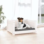 Lova šunims, balta, 55,5×45,5x28cm, pušies medienos masyvas