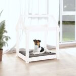 Lova šunims, balta, 61x50x70cm, pušies medienos masyvas
