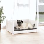 Lova šunims, balta, 65,5×50,5x28cm, pušies medienos masyvas