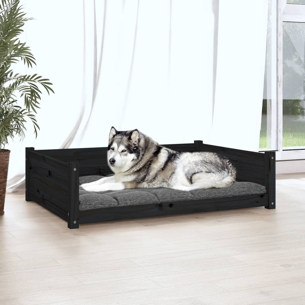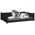 Lova šunims, juoda, 105,5×75,5x28cm, pušies medienos masyvas
