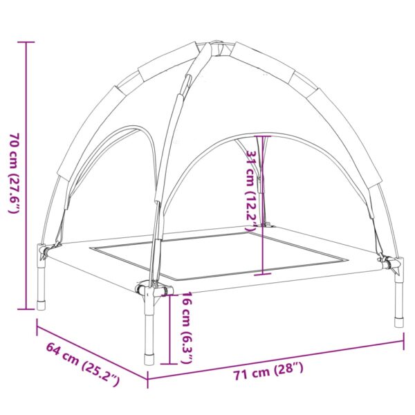 Ši lova šunims su skliautu bus patogiu ir praktišku miegojimo sprendimu jūsų pūkuotam draugui. Ilgaamžė ir orui pralaidi medžiaga: pakelta lova šunims yra pagaminta iš oksfordo audinio ir tekstileno, tad ji patvari ir tinkama kasdieniam naudojimui lauke.Tvirtas ir stabilus rėmas: milteliniu būdu dengto plieno rėmas suteikia pakeltai lovai šunims tvirtumo ir patvarumo. Keturios neslystančios guminės kojelės suteikia papildomo stabilumo.Nuimamas skliautas: kušetė-lova šunims pristatoma su nuimamu, visišką pavėsį ir apsaugą užtikrinančiu skliautu.Pakeltas dizainas: lova šunims apsaugos jūsų šunį nuo purvo ir drėgmės, taip užtikrinant jiems patogų bei sausą miegojimui skirta paviršių.Platus pritaikymas: lova šunims tinkama tiek naudojimui viduje, tiek lauke. Ji galės būti pastatyta bet kur namuose bei jūsų verandoje, terasoje ar kieme.