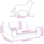 Su šia lova šunims suteikite savo plaukuotam draugui jaukią ir patogią vietą poilsiui! Patogi ir minkšta medžiaga: sofa augintiniams yra paminkštinta storu ir minkštu porolonu bei dengta aksomu, tad ji suteikia pakankamą atramą ir užtikrina aukščiausio lygio komfortą jūsų mielam augintiniui ilsėtis.Tvirtas ir patvarus rėmas: pušies medienos masyvo rėmas suteikia sofai šunims tvirtumo ir patvarumo. Keturios kojelės taip pat suteikia papildomo stabilumo.Stilingas dizainas: ši kušetė šunims puikiai tiks bet kokiame interjere bei taps puikia jūsų svetainės ar miegamojo detale. Pastaba:Prieš įsigydami, išmatuokite savo augintinio kūno ilgį.