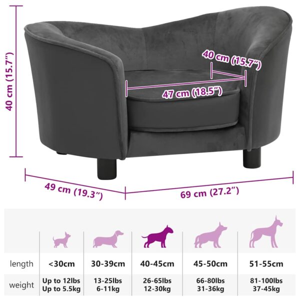 Lova šunims, tamsiai pilka, 69x49x40cm, pliušas ir dirbtinė oda