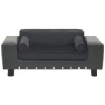 Lova šunims, tamsiai pilka, 81x43x31cm, pliušas ir dirbtinė oda