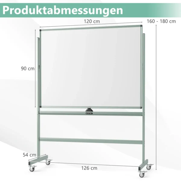 Magnetinė lenta 126×53,5×180 cm yra universali ir patogi mokymui, prezentacijoms bei bendram darbui. Dvipusė lenta su reguliuojamu aukščiu leidžia pritaikyti ją tiek vaikams, tiek suaugusiems. Didelis rašymo paviršius ir mobilumas užtikrina efektyvų naudojimą įvairiose situacijose.