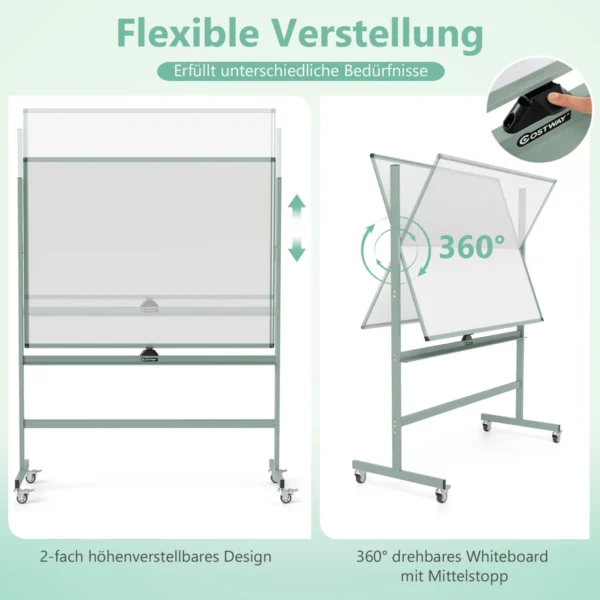 - Dvipusė magnetinė lenta su reguliuojamu aukščiu – nuo 160 cm iki 180 cm.