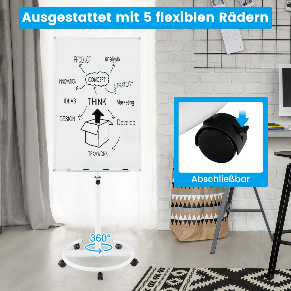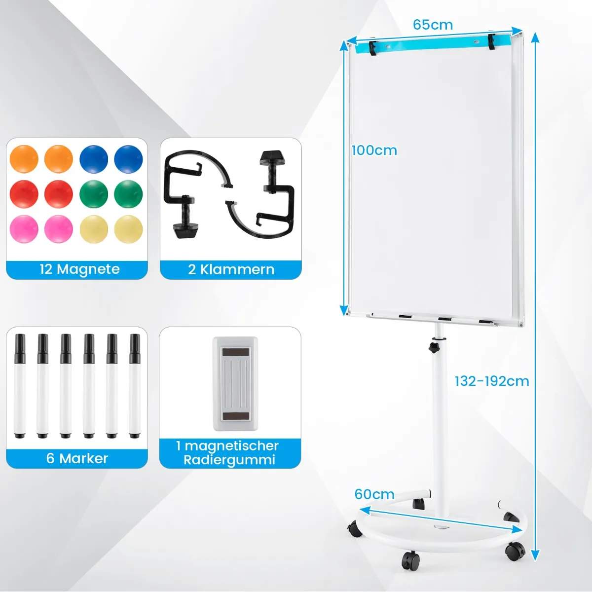 Magnetinė lenta 65x60x192cm, baltos spalvos, skirta rašymui, piešimui ir prezentacijoms. Tinka mokymui, įrašymui bei įvairioms biuro ar mokyklos veikloms. Reguliuojamas aukštis ir kampas leidžia pritaikyti lentą pagal naudotojų poreikius.