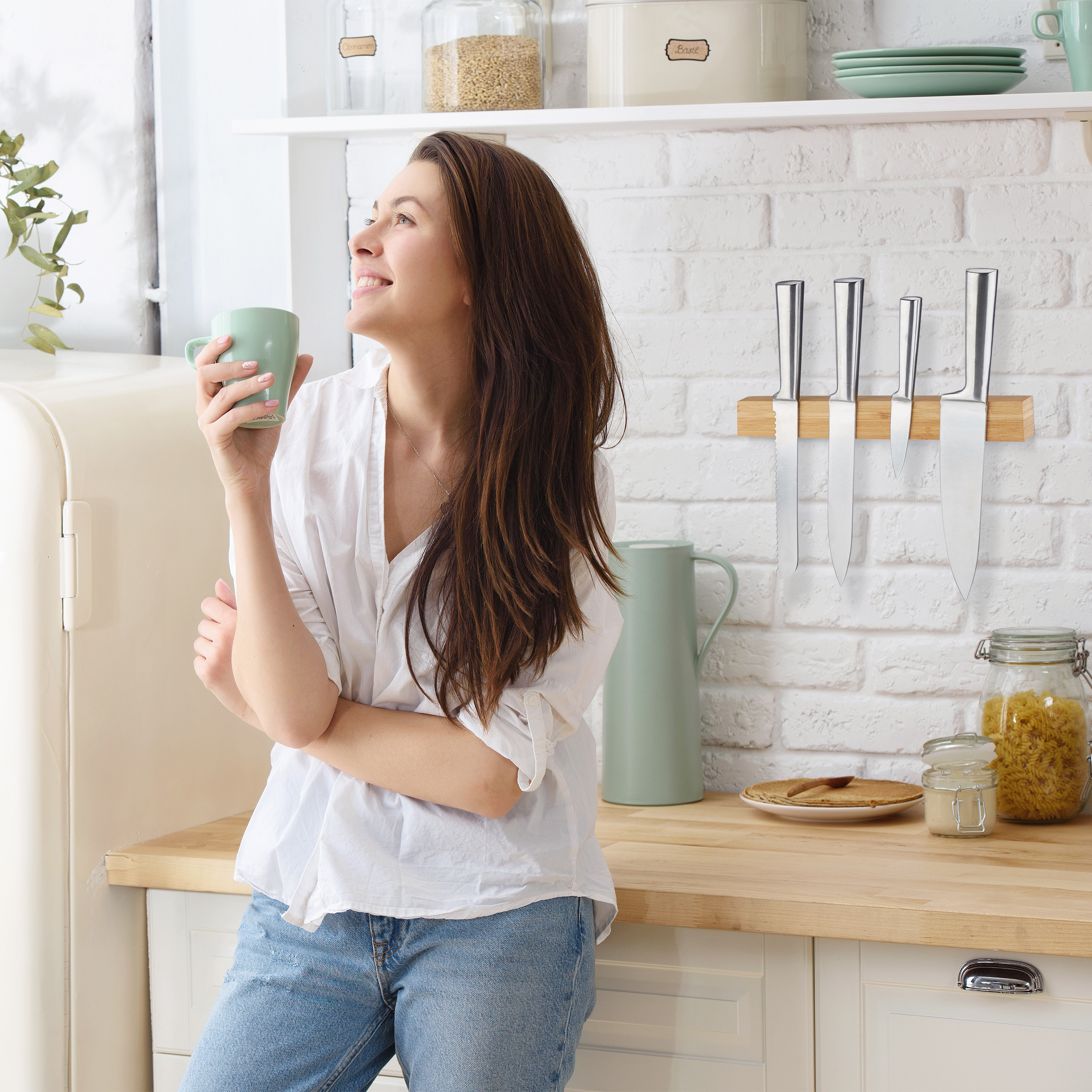 • Praktiškumas: Pamirškite vargus ieškant peilių stalčiuose. Šis magnetinis laikiklis leidžia jums greitai ir patogiai pasiekti svarbiausius virtuvės įrankius.