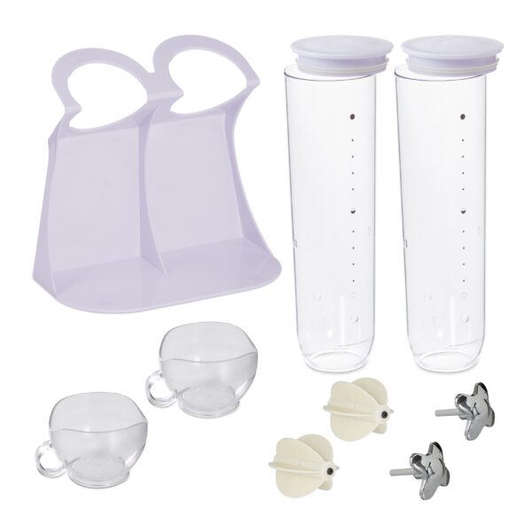 Pristatome jums elegantišką ir funkcionalų dvigubą maisto dozatorių, kuris taps nepakeičiamu pagalbininku jūsų virtuvėje. Šis stilingas baltos ir sidabrinės spalvos dozatorius yra sukurtas tam, kad jūsų mėgstami grūdai, dribsniai, riešutai ar kavos pupelės būtų laikomi švieži ir traškūs ilgą laiką.