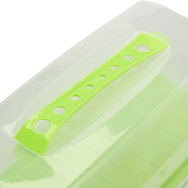 - Paprastas Naudojimas: Dangtelis lengvai užfiksuojamas po pagrindo ąselėmis, o patogi rankena leidžia lengvai transportuoti dėžutę.