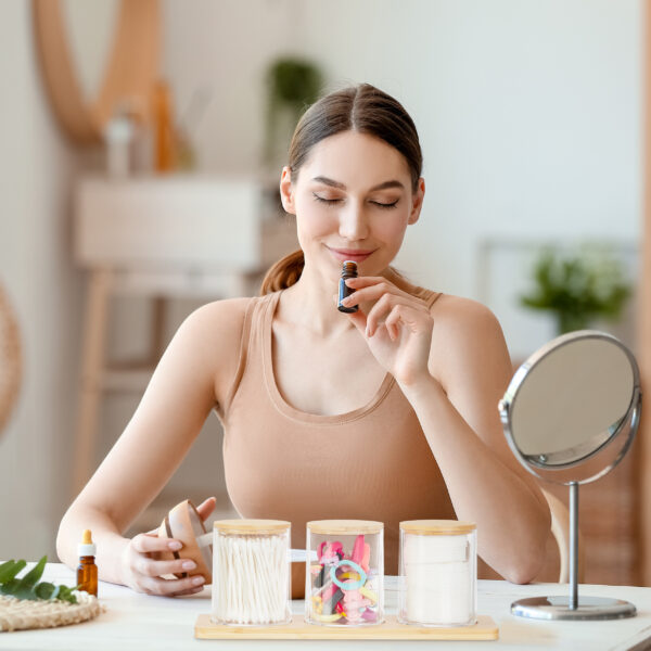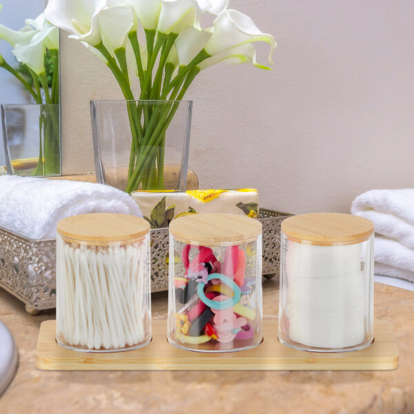 - Praktiškas Dizainas: Organizatorius turi tris apvalius skyrelius, kurie idealiai tinka vatos diskams, vatos tamponams ar kitiems smulkiems reikmenims laikyti.