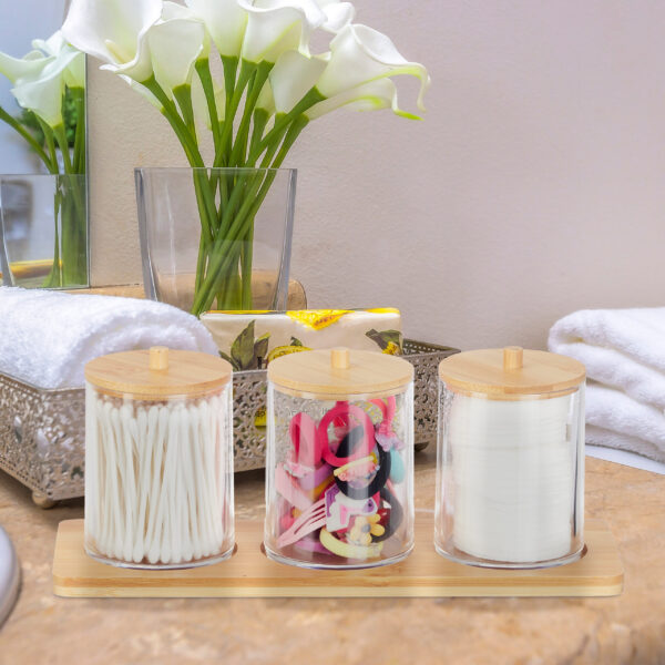- Universalus Naudojimas: Idealiai tinka vatos diskams, vatos tamponams, plaukų kaklaraiščiams, higienos priemonėms ir kitiems smulkiems reikmenims laikyti.