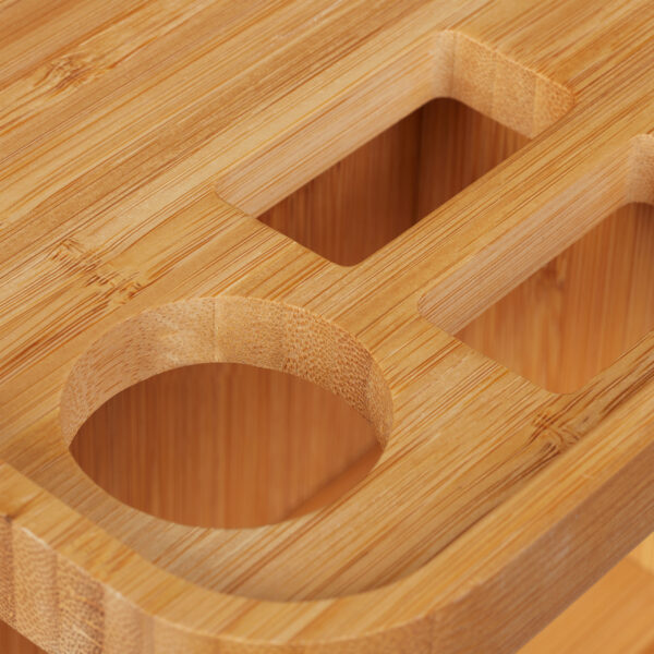 Įneškite tvarkos ir elegancijos į savo kasdienę grožio rutiną su šiuo išskirtiniu makiažo organizatoriumi. Pagamintas iš aukštos kokybės bambuko, šis organizatorius ne tik puikiai atrodo, bet ir yra itin funkcionalus. Jo šviesiai ruda spalva suteikia natūralumo ir šilumos jūsų interjerui.
