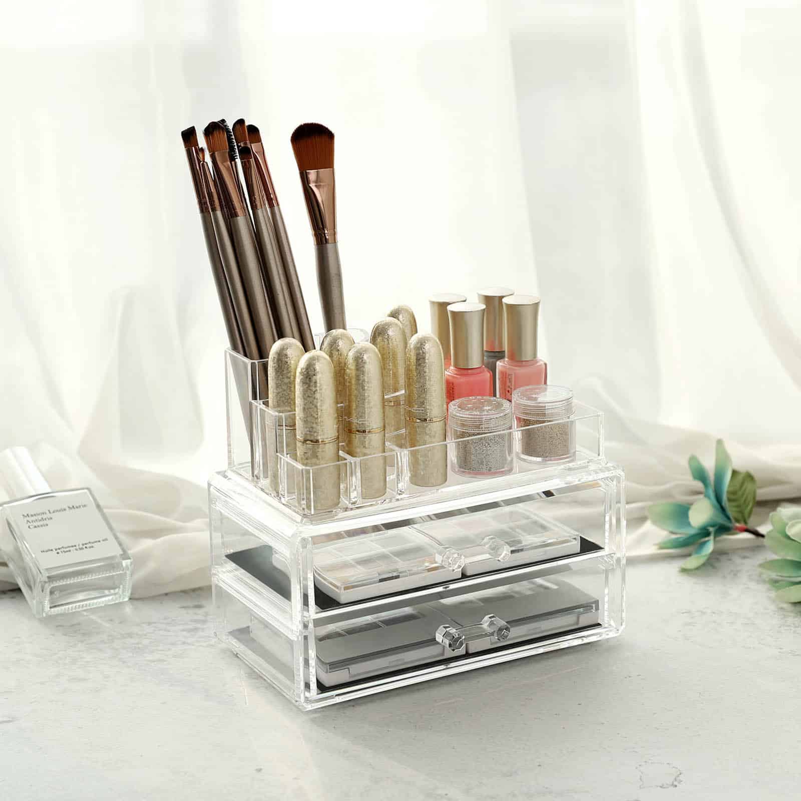 Visur vonioje ar ant tualetinio staliuko guli makiažo reikmenys? O ar visada nerandate tinkamų, kai prireikia? Tuomet ši permatoma akrilinė kosmetikos tvarkyklė jums puikiai tiks!
