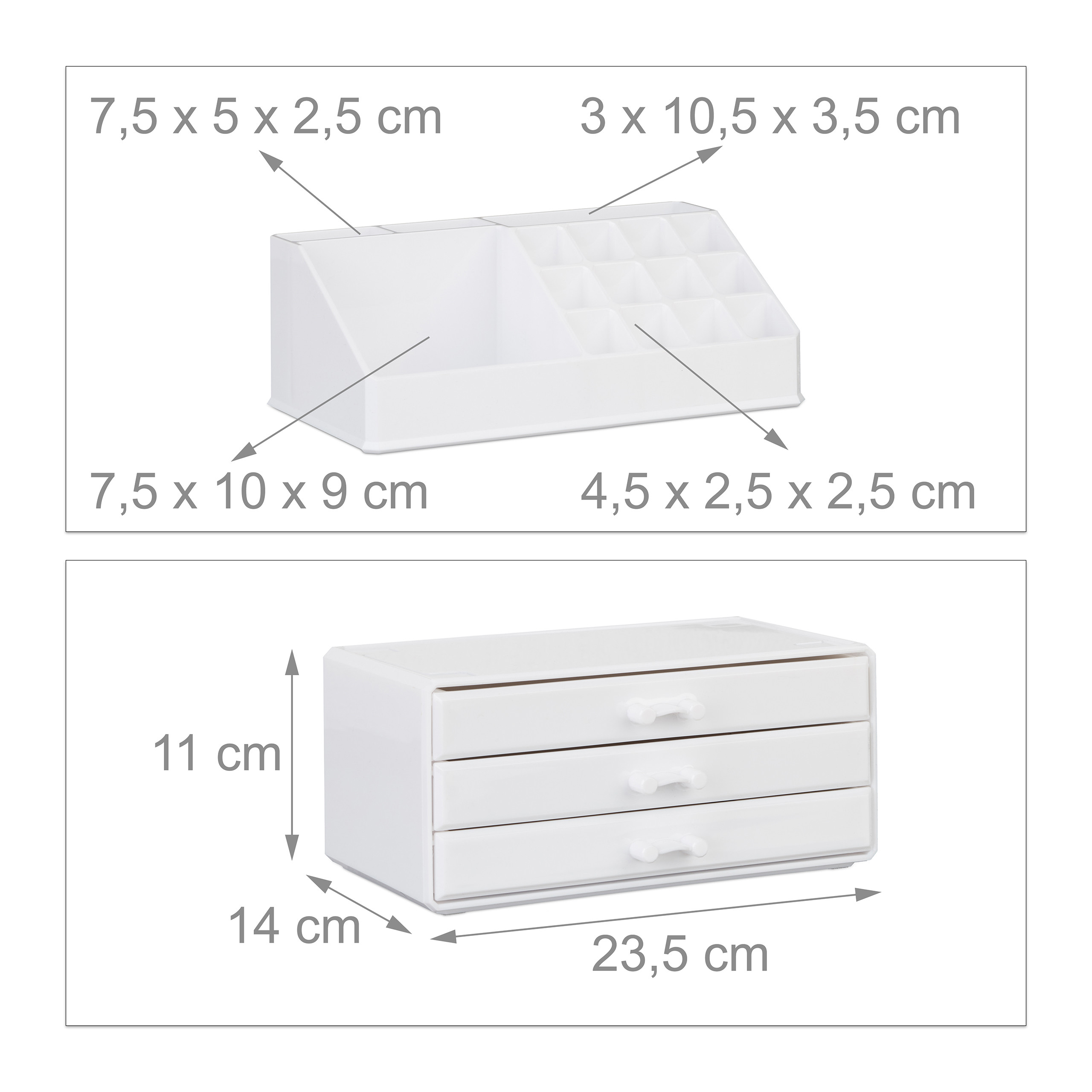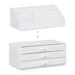 Makiažo Organizatorius su Stalčiais 19×23,5x14cm, Baltos Spalvos