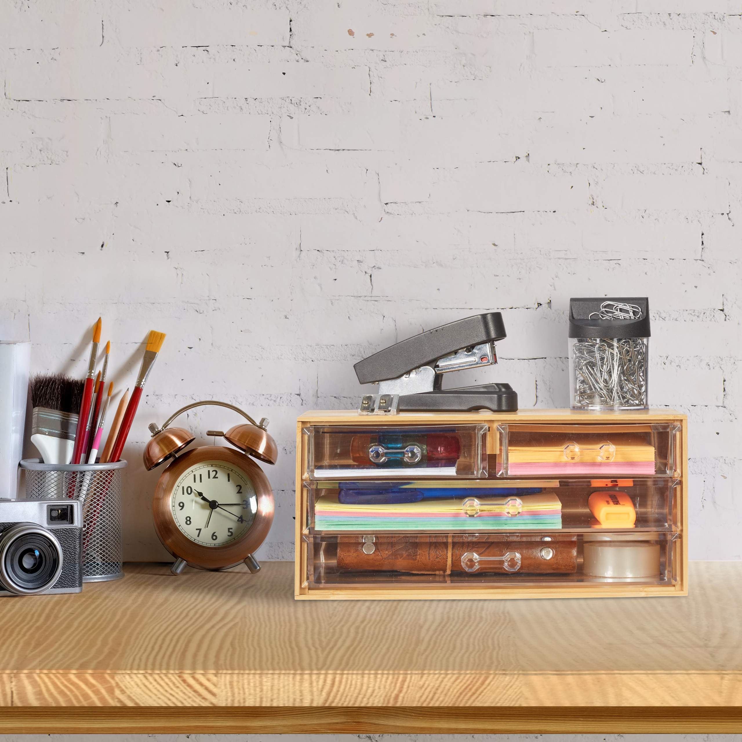 Įneškite tvarką ir eleganciją į savo kasdienę grožio rutiną su šiuo išskirtiniu makiažo organizatoriumi. Pagamintas iš tvirto bambuko, šis dekoratyvinis makiažo tvarkytuvas ne tik padės jums išlaikyti tvarką, bet ir taps stilingu akcentu jūsų tualetiniame staliuke.
