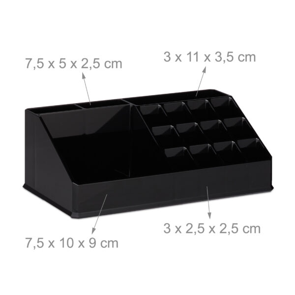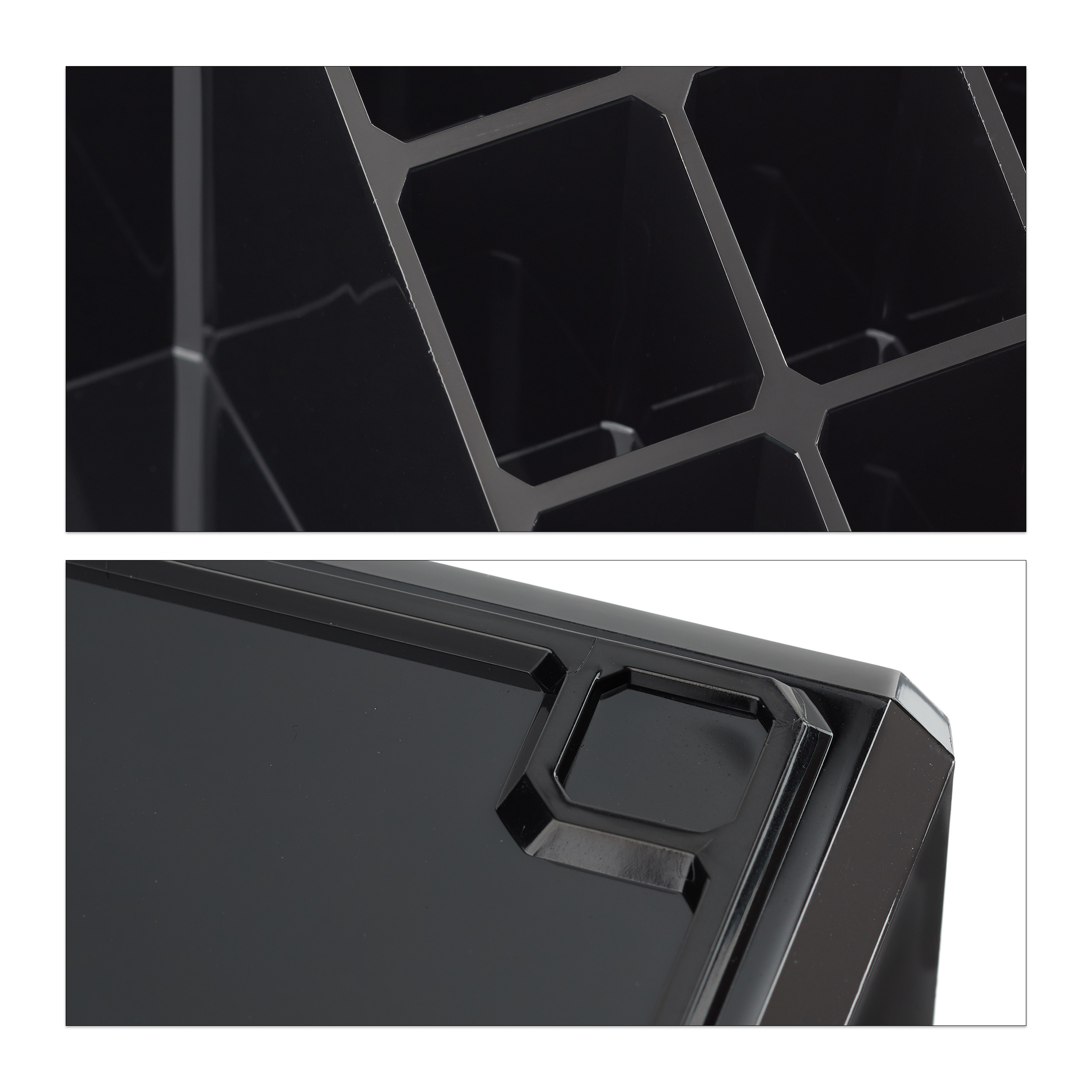 - Skyrių Skaičius: 20 – pakankamai vietos nagų lakui, lūpų dažams, šepečiams ir kitiems grožio produktams.