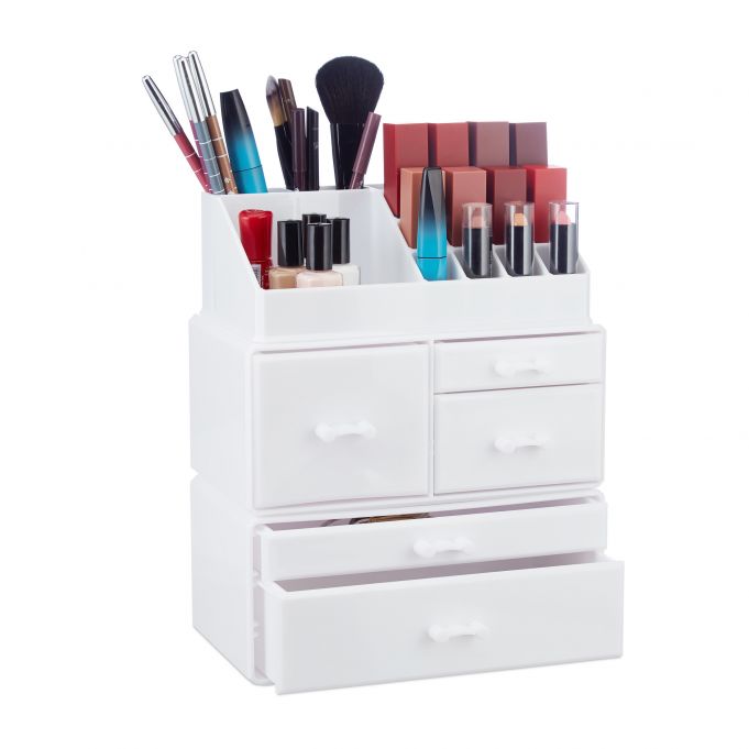 Makiažo Organizatorius su Stalčiais 29,5×23,5x14cm, Baltos Spalvos