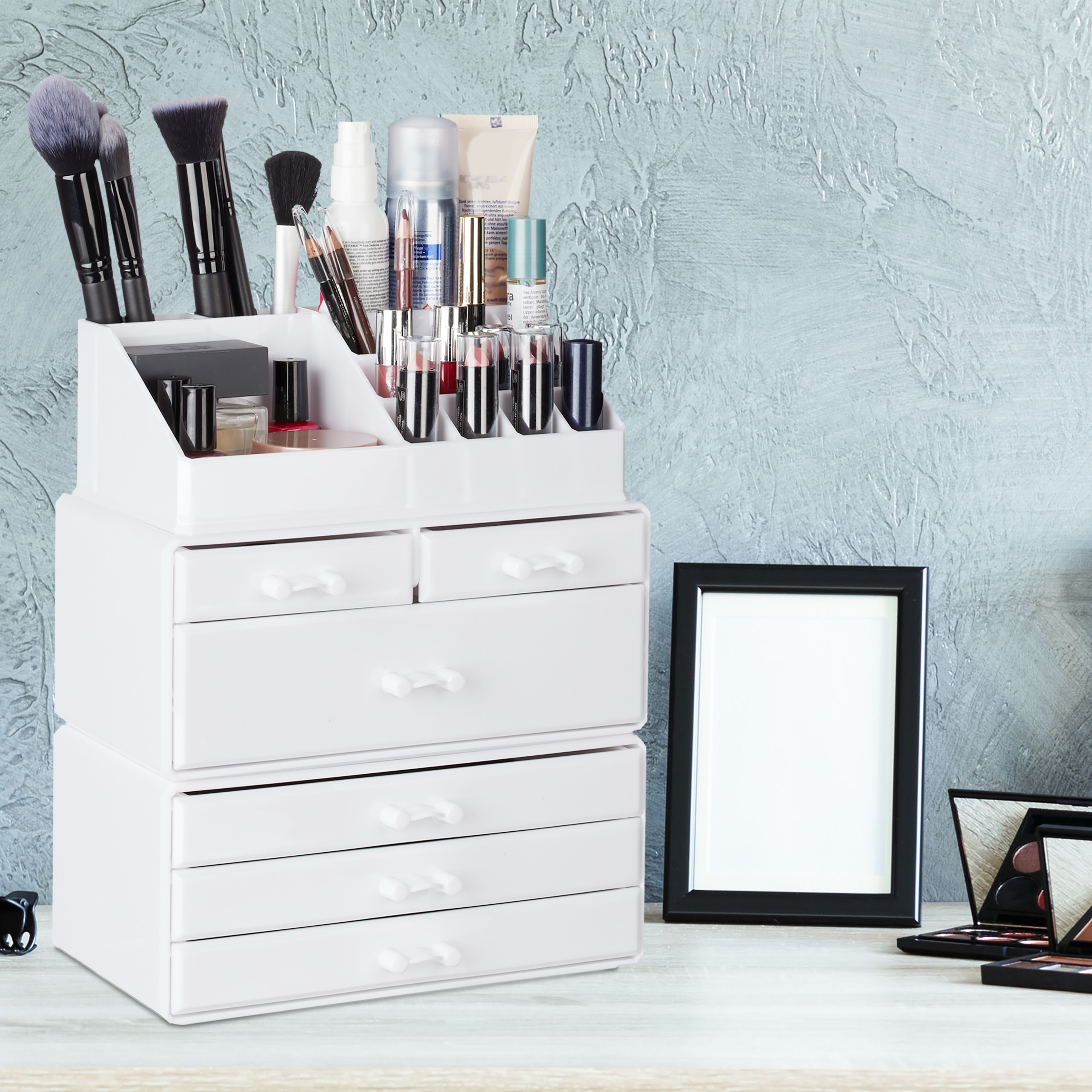 Makiažo Organizatorius su Stalčiais – Elegancija ir Tvarka Jūsų Kosmetikos Kolekcijai