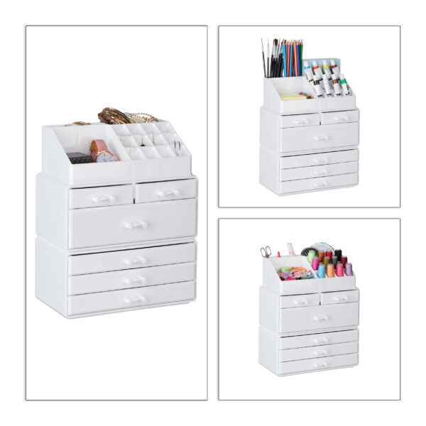 - Daugiafunkcionalumas: 6 stalčiuose galite laikyti ne tik kosmetiką, bet ir papuošalus bei kitus smulkius aksesuarus.