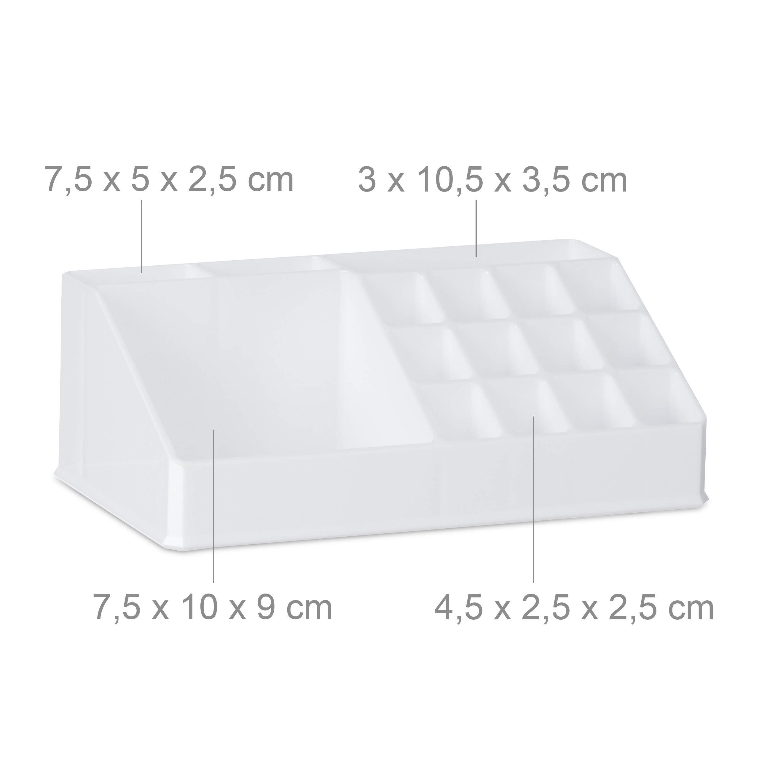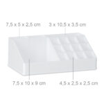 - Modulinė struktūra: Sudarytas iš 3 sukraunamų akrilo dėžučių, kurios užtikrina tvarką ir leidžia lengvai pasiekti visus reikalingus daiktus.