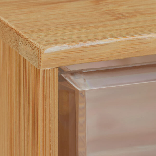 Pristatome Jums išskirtinį makiažo organizatorių, kuris ne tik padės palaikyti tvarką, bet ir taps stilingu akcentu Jūsų interjere. Šis šviesiai rudos spalvos organizatorius, pagamintas iš natūralaus bambuko, yra puikus pasirinkimas tiems, kurie vertina kokybę ir estetiką.