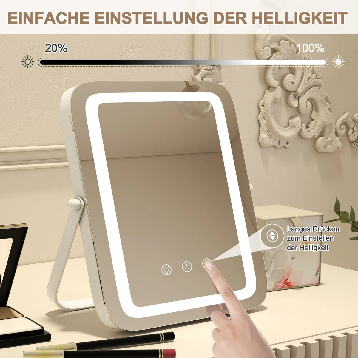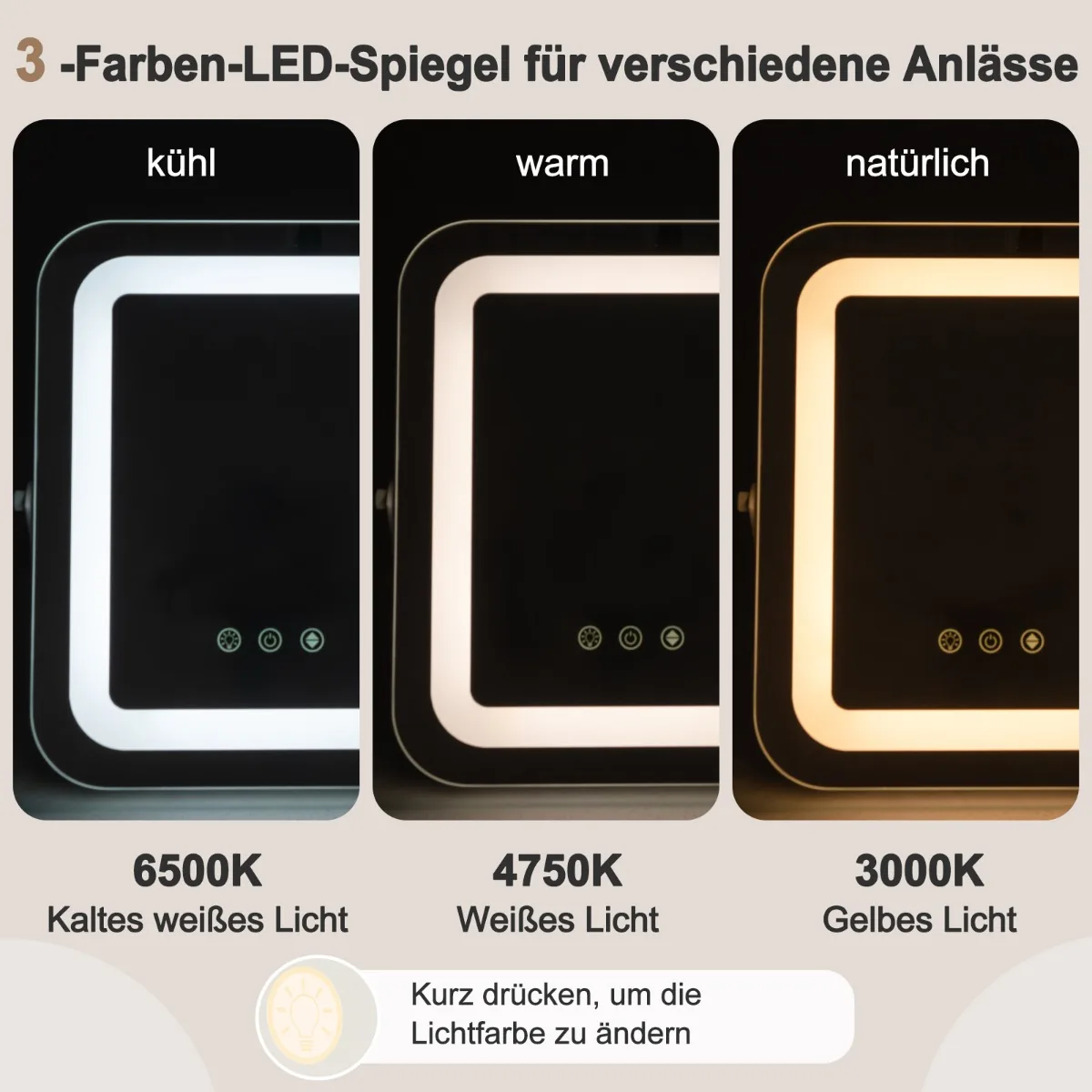 - Trijų spalvų LED šviesos variantai prisitaiko prie skirtingų makiažo situacijų.