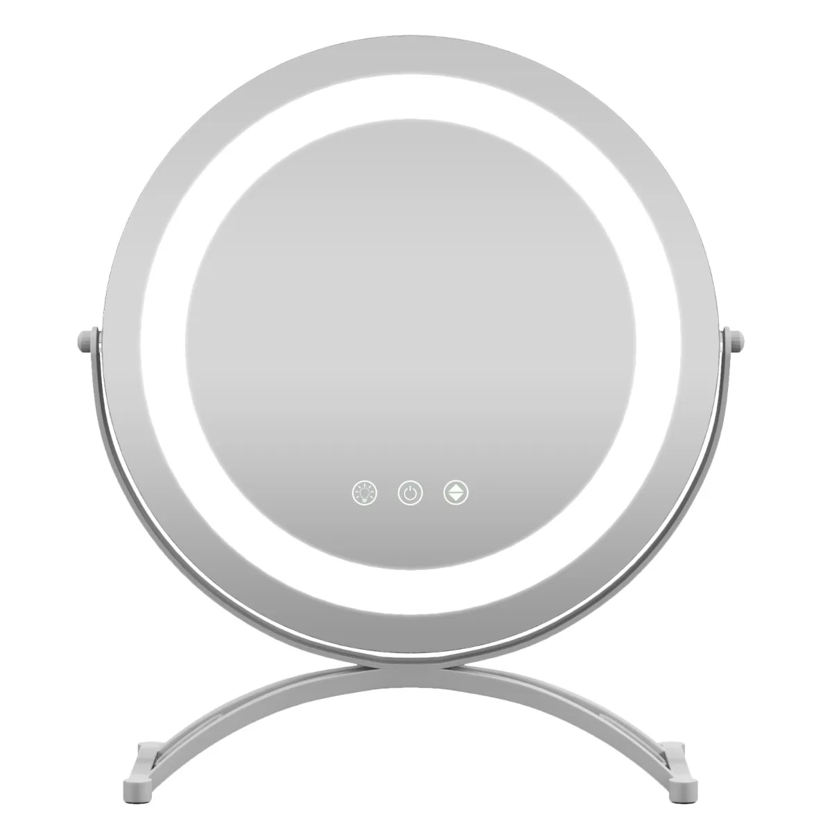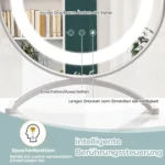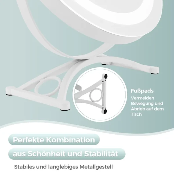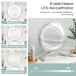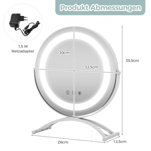 Makiažo veidrodis 32,5×12,5×35,5 cm baltos spalvos – patogus sprendimas tiksliam makiažo dekoravimui ir kasdieniams grožio ritualams. Įrengtas reguliuojamas LED apšvietimas su trijų spalvų ryškumo parinktimis, šis veidrodis užtikrina tinkamą apšvietimą bet kokiomis sąlygomis.