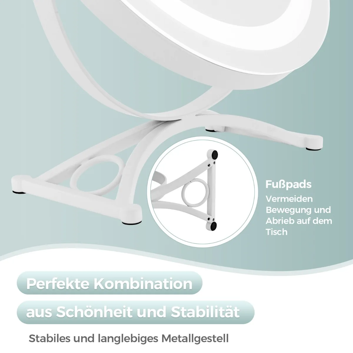 - Tvirtas metalinis pagrindas su pėdų pagalvėlėmis stabilumui ir stalviršio apsaugai.