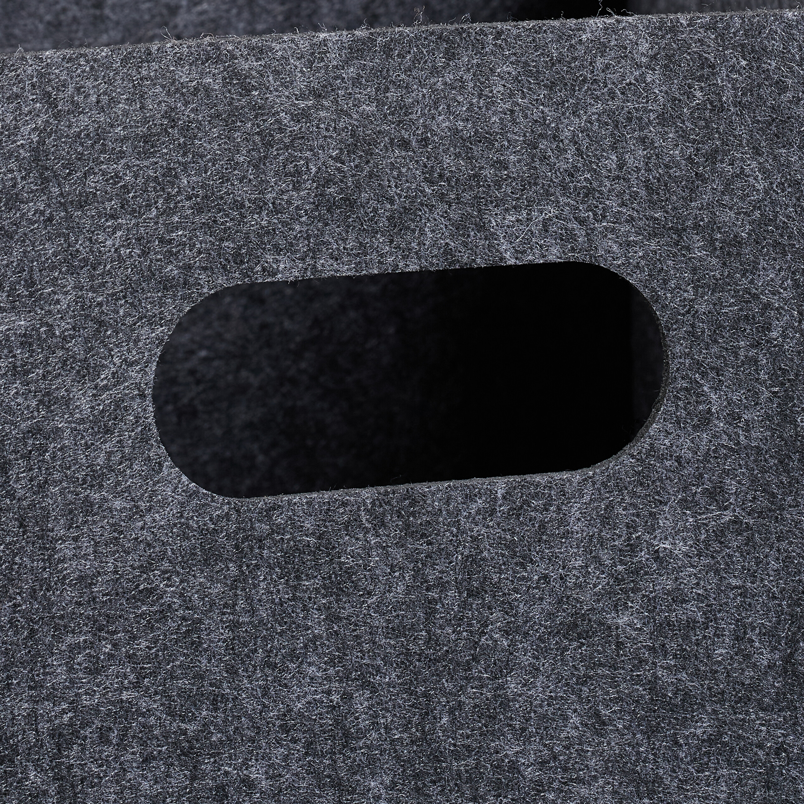 Šis kvadratinis veltinio krepšelis yra ne tik funkcionalus, bet ir stilingas sprendimas jūsų namams. Pagamintas iš labai patvarios ir elastingos medžiagos, jis puikiai tinka įvairiems poreikiams. Tamsiai pilkos spalvos dizainas suteikia modernumo ir elegancijos, todėl jis puikiai dera bet kokiame interjere.