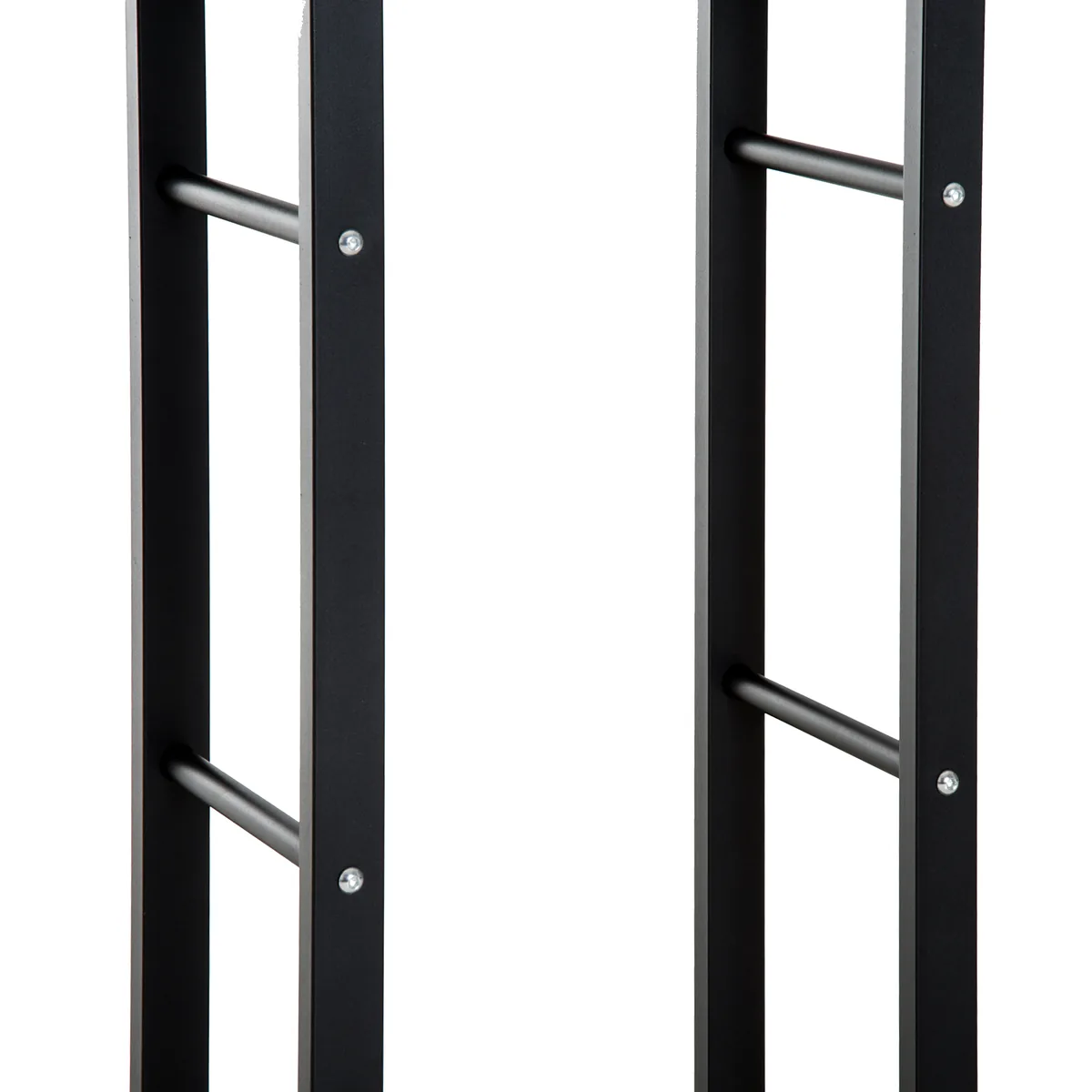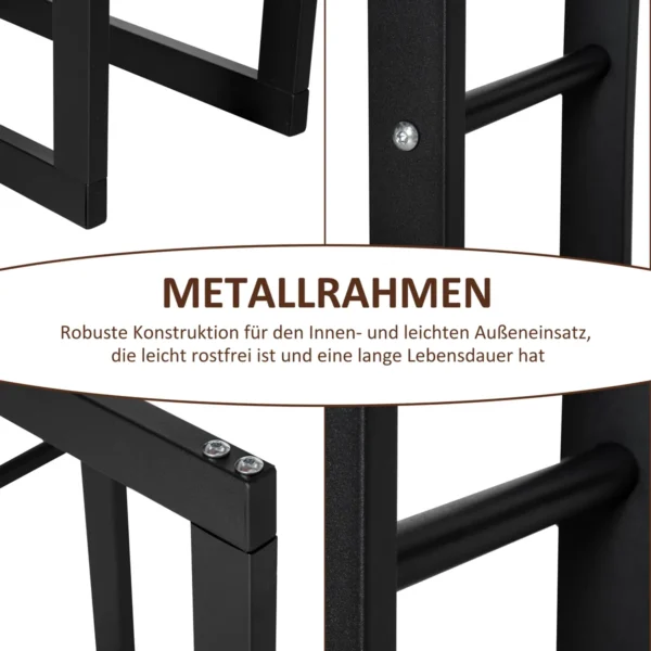 Naudodami mūsų HOMCOM malkų lentyną, jums nebereikia nerimauti dėl saugaus malkų laikymo. Mūsų dizaino malkinėje lentynoje galite aiškiai laikyti malkas, židinio žiebtuvėlius ir kitus priedus. Jūsų malkų stovas gali išlaikyti iki 100 kg. Tai įmanoma dėl tvirto milteliniu būdu dengto plieno rėmo. Dizainas yra kampuotas, elegantiškas ir stilingai papildo jūsų gyvenamąją erdvę.