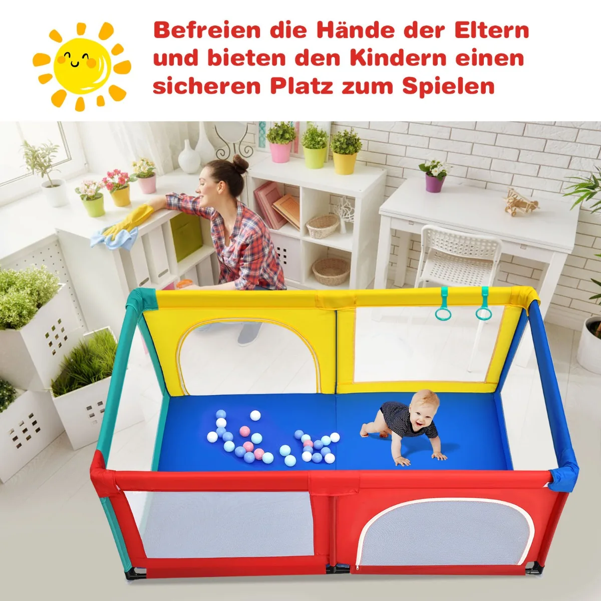 - Maniežas sumažina tėvų stresą, suteikdamas vaikams savarankiškos žaidimų erdvės.