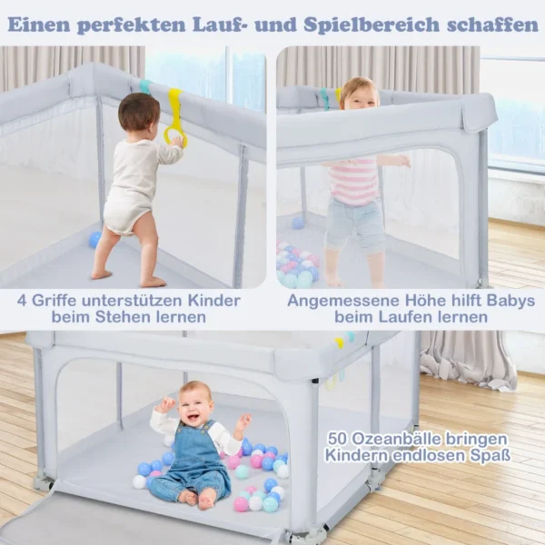 - Komplekte 50 žaidimo kamuoliukų, kurios skatina kūdikių judėjimą ir žaidimą.