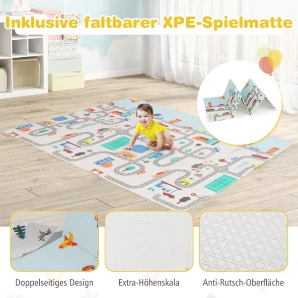 - Užtrauktuku užsegamos durys ir tinklinė sienelė užtikrina vaikų saugumą.