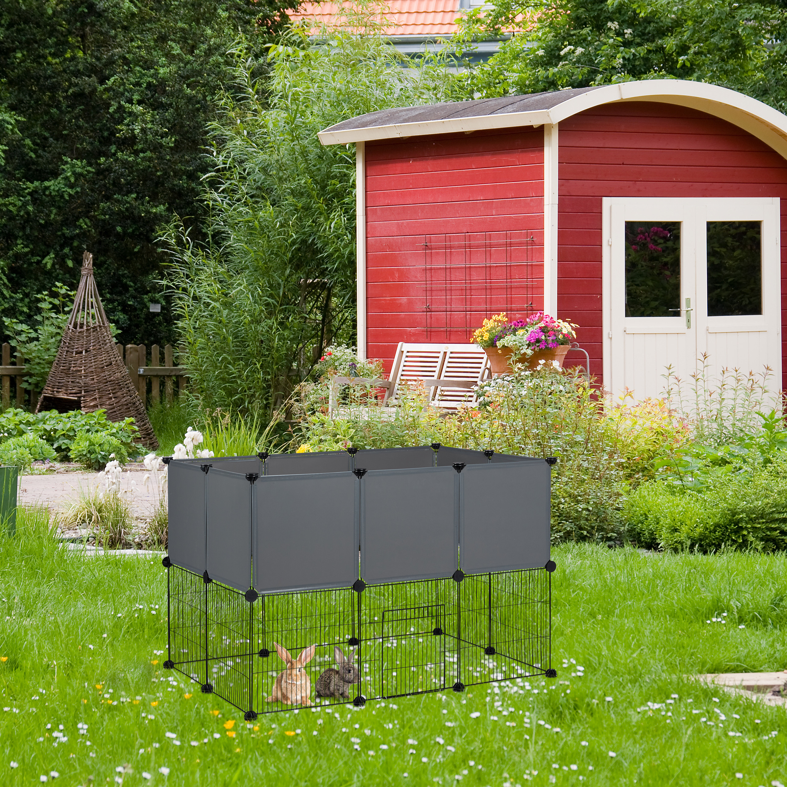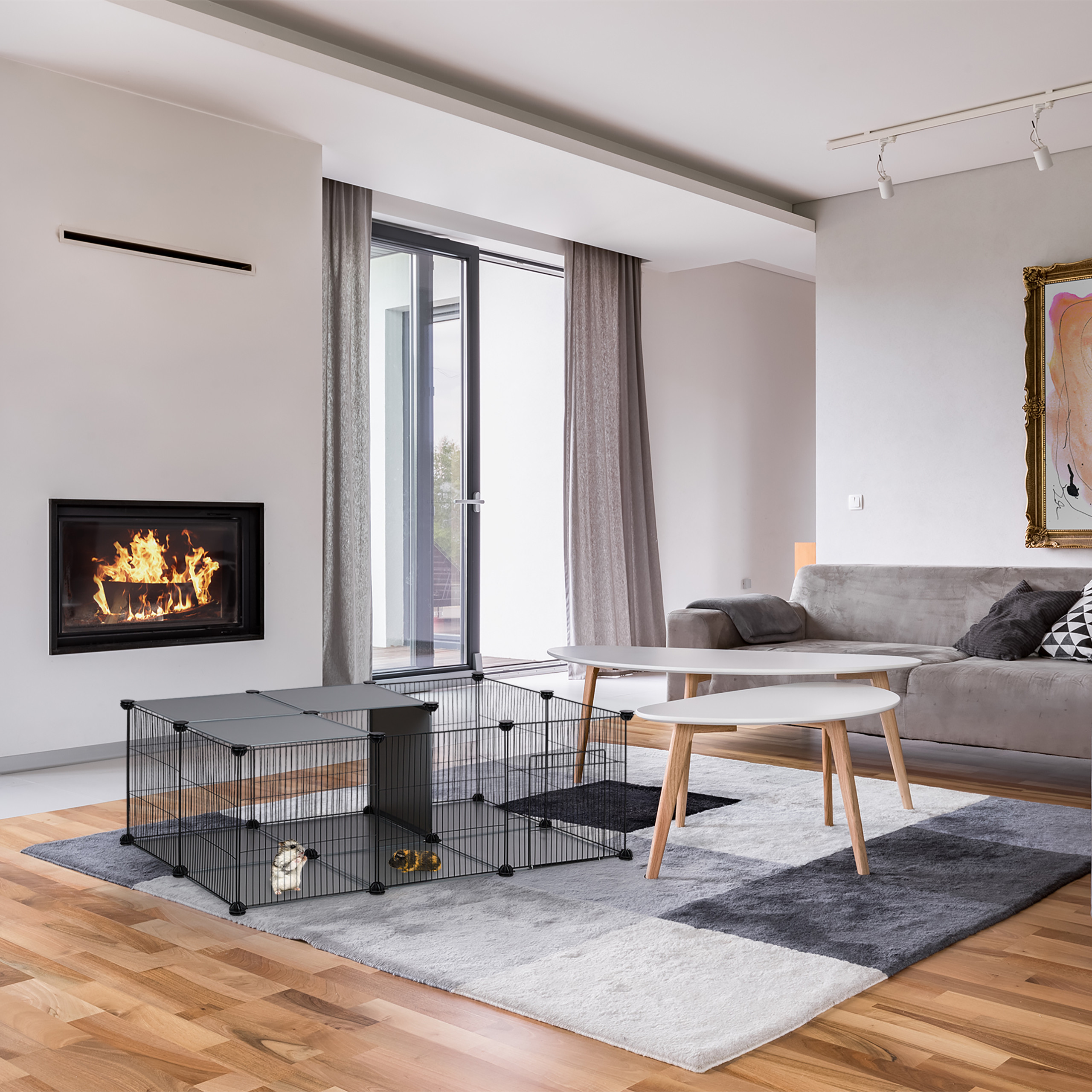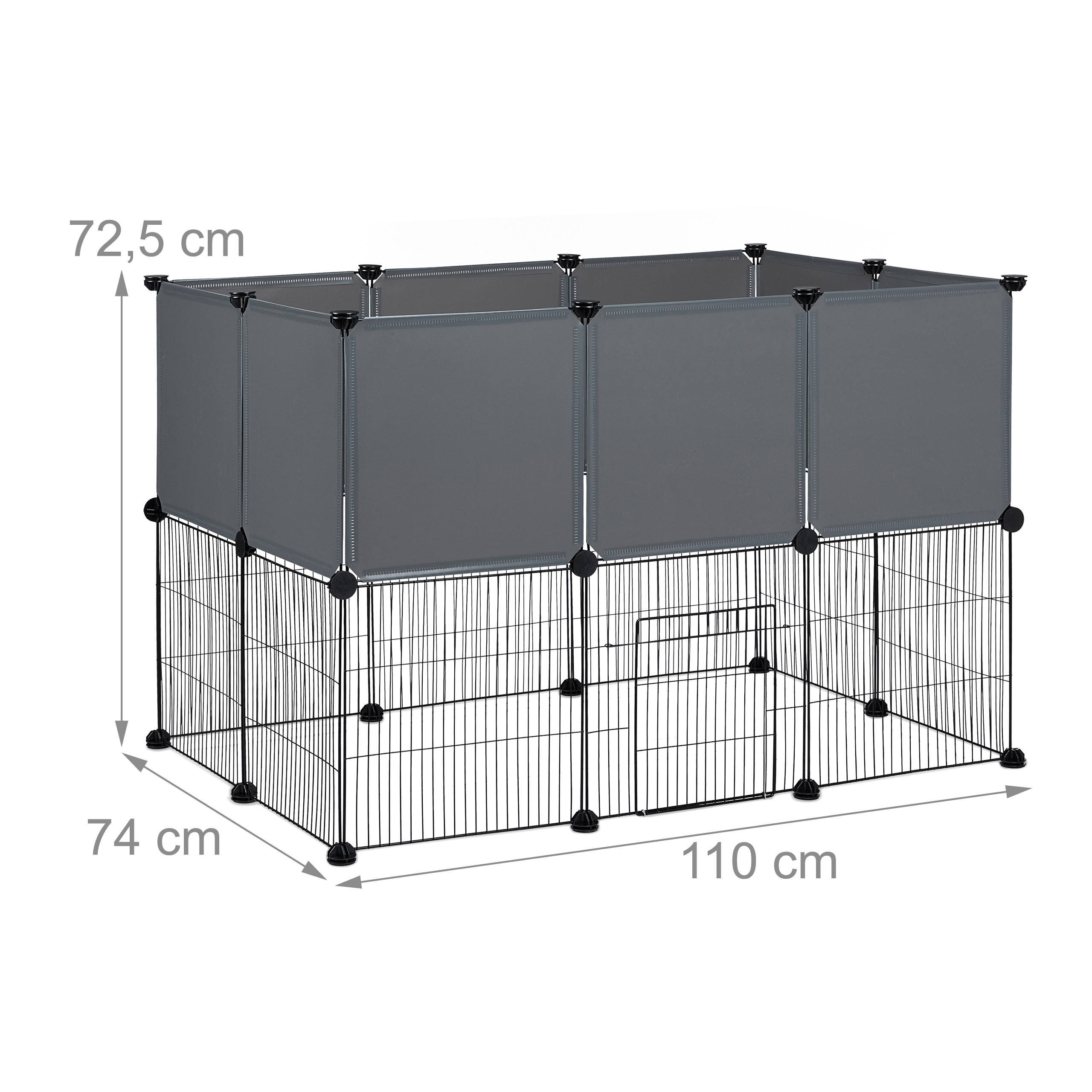 Maniežas Graužikams 72,5x110x74cm, Pilkos/Juodos Spalvos