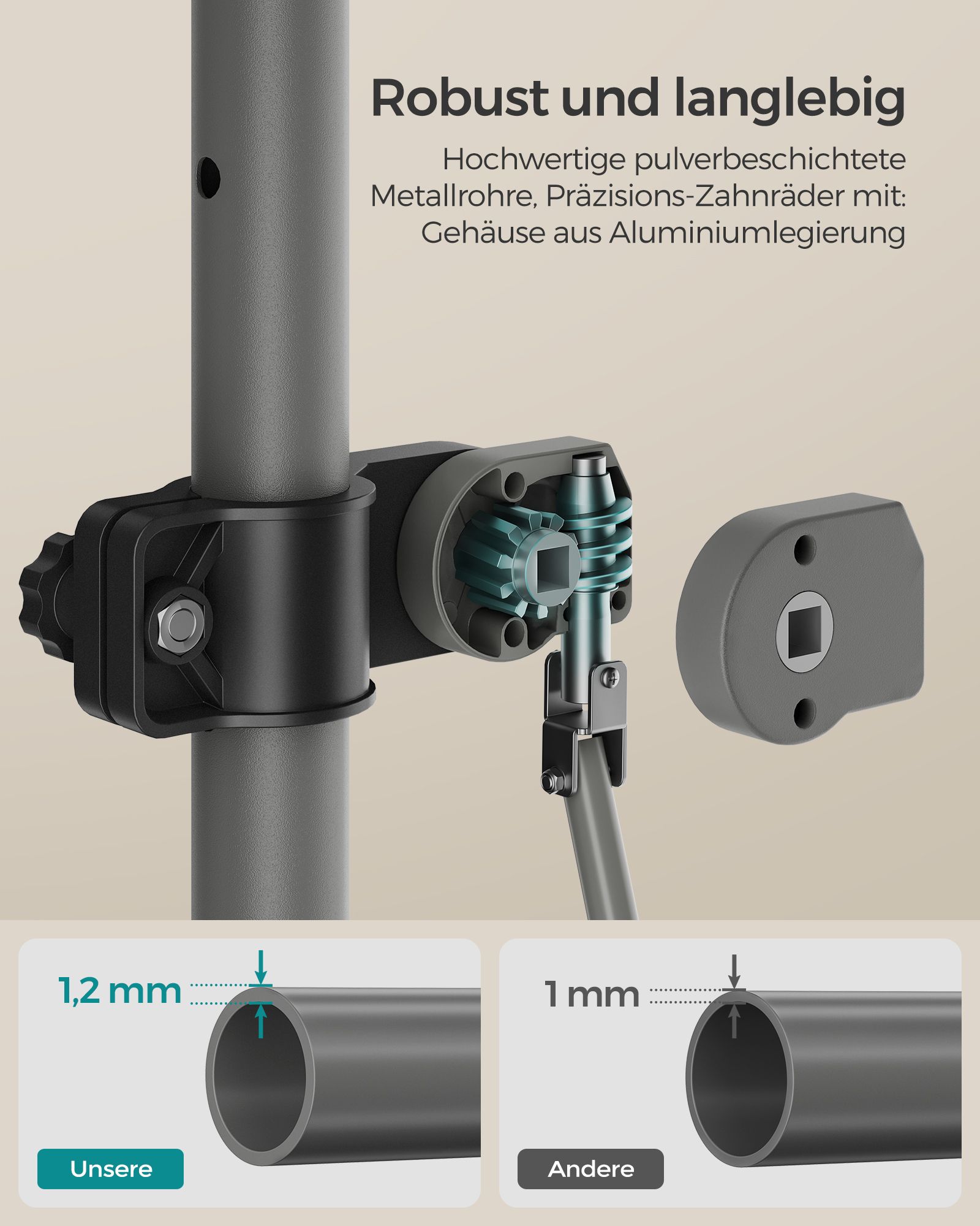 Reguliuojamas aukštis leidžia lengvai pritaikyti markizę pagal jūsų poreikius, o alkūninio veleno sistema užtikrina paprastą ir greitą valdymą. Ši markizė yra ne tik praktiška, bet ir estetiškai patraukli, todėl ji taps puikiu jūsų lauko erdvės akcentu.