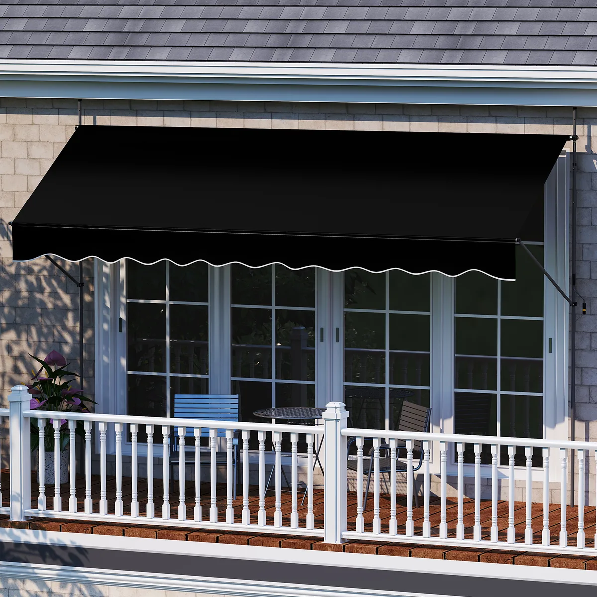 - Markizė skirta naudoti kieme, terasoje, balkone ar kavinės lauko erdvėje tiek kaip šešėlio, tiek kaip privatumo uždanga.