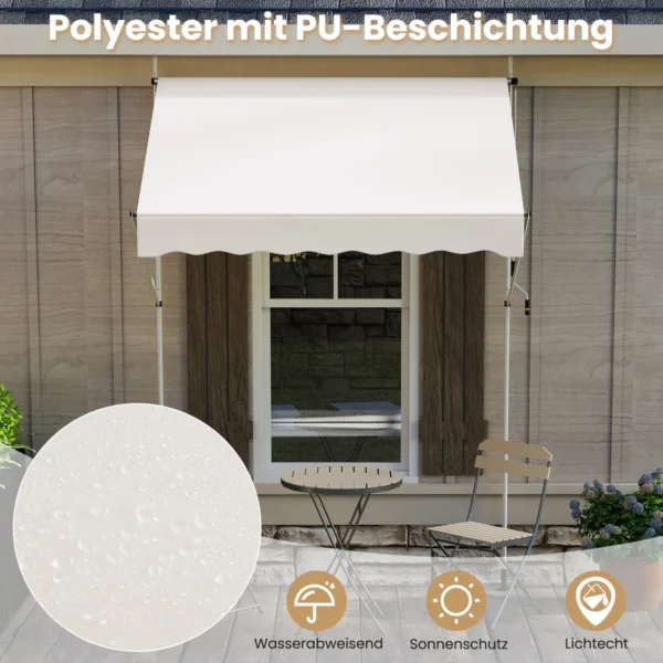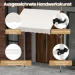 - Rankiniu būdu ištraukiama konstrukcija leidžia lengvai reguliuoti markizės išplėtimą.