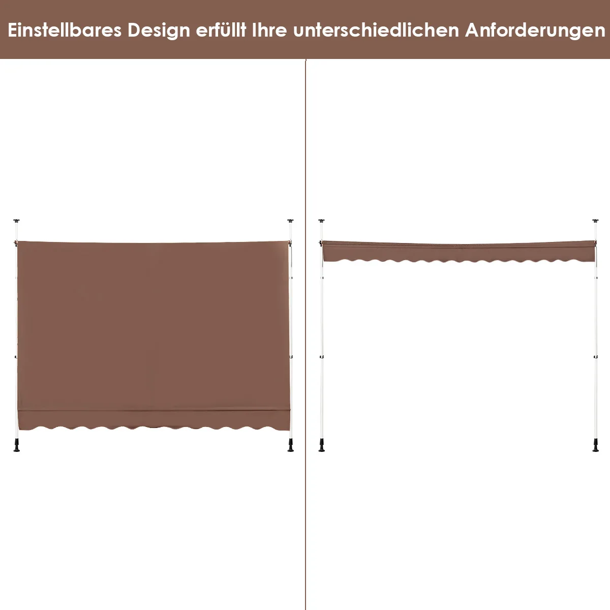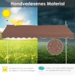 Markizė 300x175x300 cm, rudos spalvos, skirta apsaugai nuo saulės terasoje, balkone ar sode. Ištraukiamas tentas pagamintas iš atsparaus Oksfordo audinio su PU danga, o tvirtas aliuminio rėmas užtikrina stabilumą net esant vėjuotam orui. Markizė patogi naudoti dėl reguliuojamo aukščio ir rankinio švaistiklio mechanizmo.