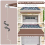 Markizė 360x300cm rudos spalvos yra praktiškas sprendimas lauko erdvėms, užtikrinant patikimą pavėsį. Ištraukiama markizė pagaminta iš aliuminio ir poliesterio, atspari saulės spinduliams bei lietui. Ji pritaikoma balkonams, terasoms, parduotuvėms ir kavinėms.