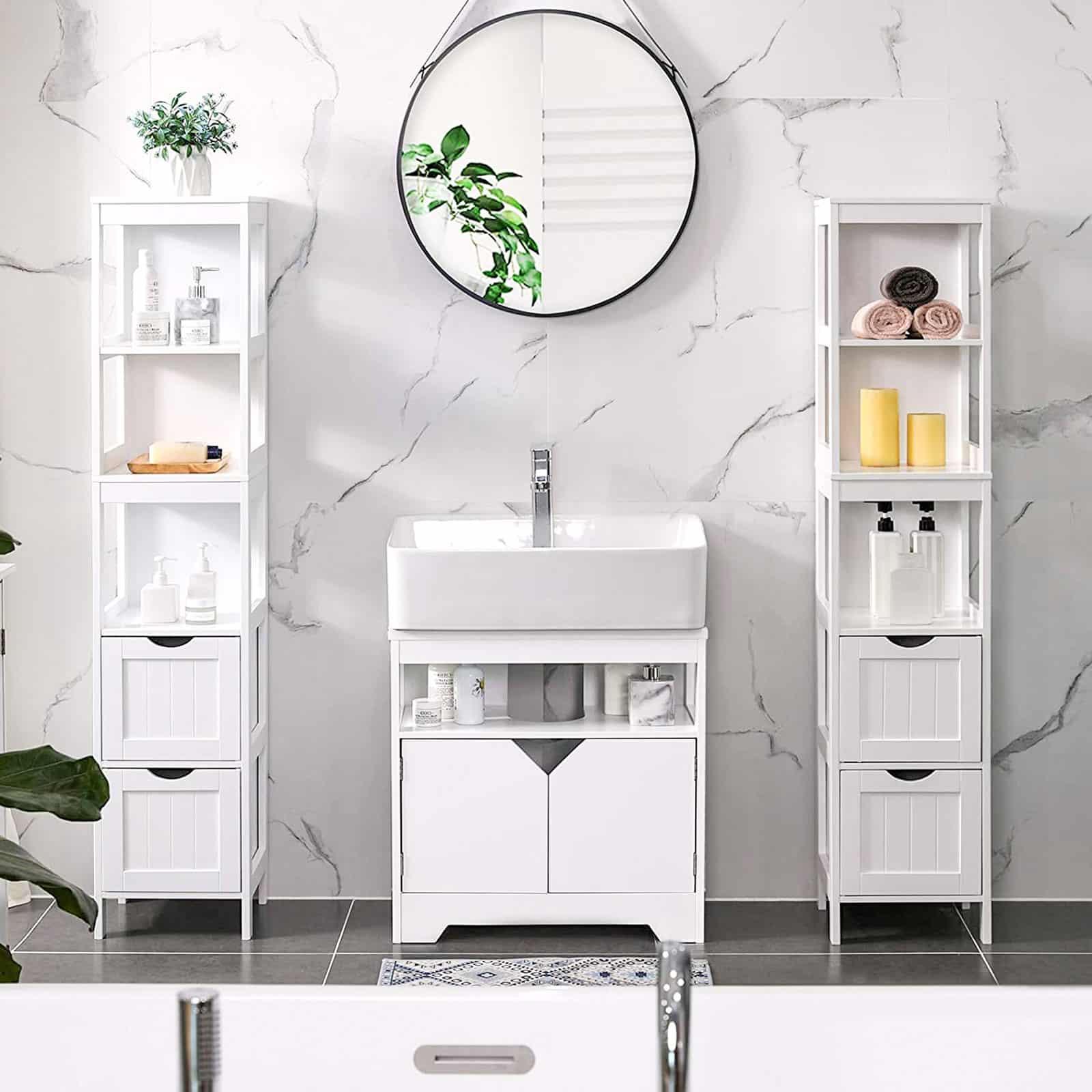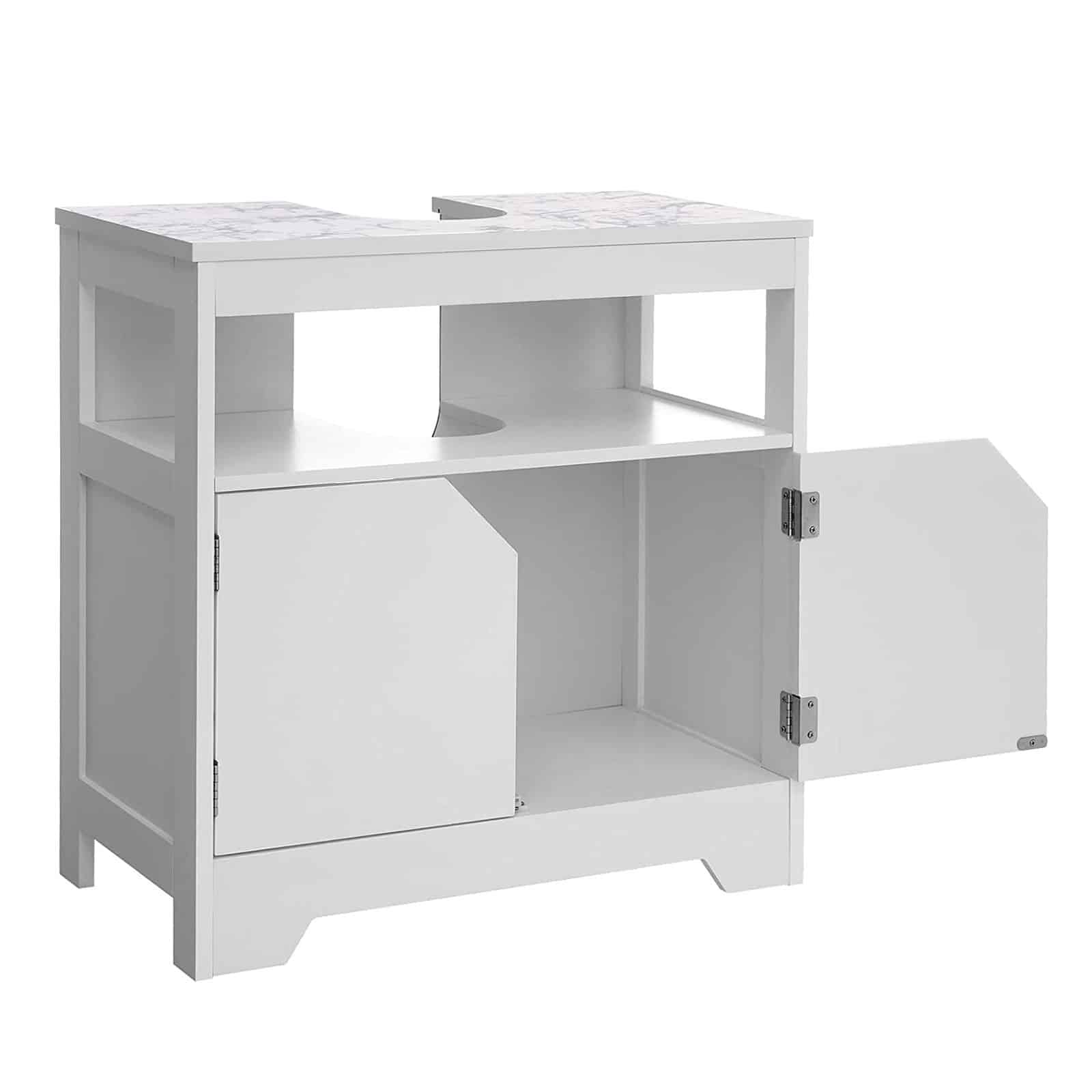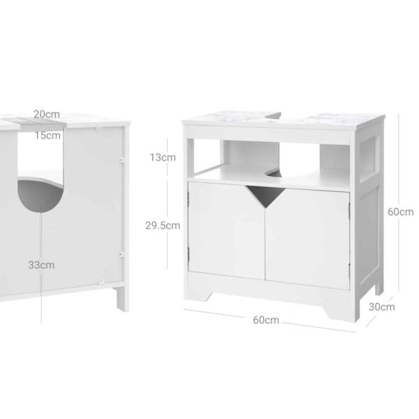 Ar vis dar trūksta praktiškos spintelės vonios reikmenims laikyti? Nuobodūs vonios baldai negali sukelti jūsų susidomėjimo? Tada turėtumėte pažvelgti į šią VASAGLE marmurinės išvaizdos kriauklės spintelę, baltos spalvos.