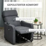Palengvinkite savo gyvenimą su šiuo elektriniu HOMCOM gultu. Jei kenčiate nuo judėjimo problemų, ši elektrinė kėdė yra idealus sprendimas. Vieno mygtuko paspaudimu galite be vargo persijungti iš stovimos į gulimą padėtį. Integruota pėdų atrama leidžia ištiesti kojas ir užimti atsipalaidavusią laikyseną, o gausus paminkštinimas užtikrina išskirtinį komfortą ir tikras atsipalaidavimo akimirkas.